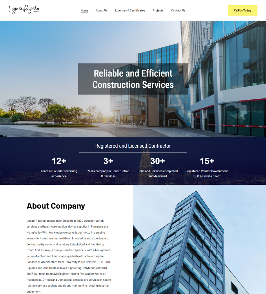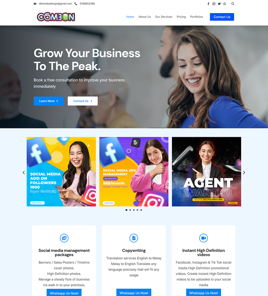 Portfolios Check out our past works FWD Energy Monosa Green Glamz Deco (E-Commerce) Dexco Engineering Little Caliphs Laman Seri Hans Trading NN Carpet (E-Commerce) LogixAge Sdn Bhd Astra Engineering AMR Prestige Legasi Razsha Mark Baba Pets Front Connect Gunong Water Fina Event Avestar Zirco Chem (E-Commerce) Leona Cat House Sailajah Segamat (E-Commerce) Infak Rezeki Masjid Kg Sg Lang Baru Kamalinda Wedding Cuepacs Care Satay Aroma UmiSue Medispa (E-Commerce) Ikkamara Milana Jamil (E-Commerce) C9 Com Tech VMA Maritime Jujucare Medic (E-Commerce) Mark Law Chambers Murtabak Abg Sado (E-Commerce) Dr. Clean Docto Aircond Zazazuan (E-Commerce) NV Malaysia Heal & Peace Solution Inimfire Malaysia Infaq Kurma Widuri Florist (E-Commerce) Cipta Perkasa Sdn Bhd Perodua Glenmarie Travel & Tours Direct Solutions & Services Hotel Kamelia Penang Denta Cares Come On Mall Cetak Murah Seremban Ads Green Gtech Industries Parts BebiMora (E-Commerce) Al Kauthar Eduqids Bullgadget Agro Voltec Body Grip Support (E-Commerce) Bunga Bawal HQ (E-Commerce) Bawal Luxe (E-Commerce) Viilean (E-Commerce) Promosi Astro Broadband One Vet Alliance Zill Legacy Zuzas Dotes (E-Commerce) Cakesha (E-Commerce) Roadtaxpro (E-Commerce) Sweethut Cotton (E-Commerce) Penghantaran Kenderaan Roadtaxdrop.my (E-Commerce) RDQS Consult Precious Kids Maahad BQWH IT Solara Permainan Tradisi Promo Solara Transrapid Holiday Ewaste King Tiger Lovva QVIT (E-Commerce) Amazaque (E-Commerce) Alif Raudhah Travel Cari Rumah Murah Jujucare